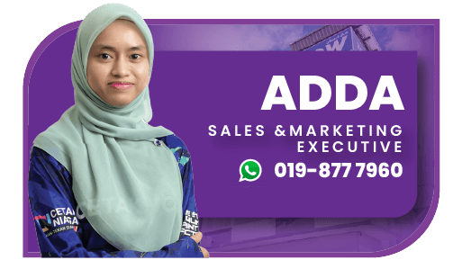 Anda Boleh Terus Tekan Butang WhatsApp Atau Isi Borang Pertanyaan Dibawah. Staff Sales Kami Akan Reply Dan Menghubungi Anda Dengan Kadar Segera.